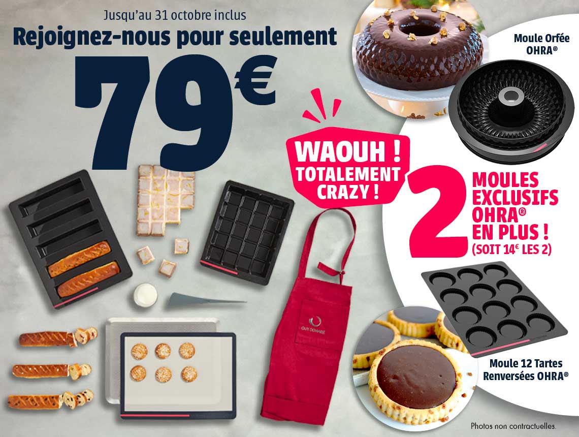 Ce coffret, c’est LE choix à ne pas manquer : une édition limitée exceptionnelle, jamais vue chez Guy Demarle 😍 Avec une sélection de moules, d’ustensiles et d‘épicerie incontournables, c’est une opportunité unique. Et ce n’est pas tout : le prix de ce coffret est même inférieur à la valeur totale des moules Ohra® qu’il contient ! C’est l’offre idéale pour lancer votre aventure de Conseiller Culinaire. Ne passez pas à côté !